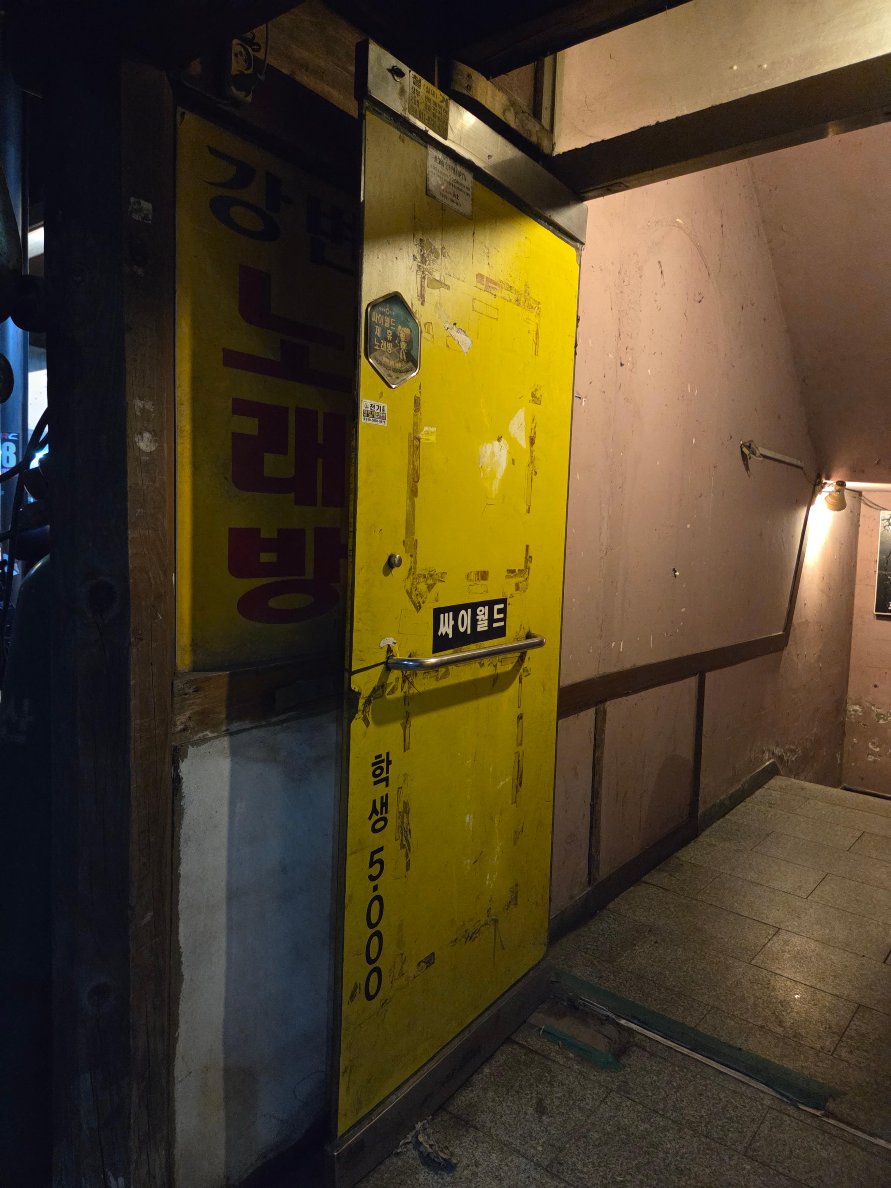 그 옛날에 뭐가 있었는지 모르겠지만, 술집으로 들어가는 입구에는 <싸이월드>라는 스티커가 붙어있다. 아마 노래방이었을 것 같은데, 다 떼어지지 않은 스티커와 "학생 5000원"이라는 가격표를 이 날따라 유심히 봤다.